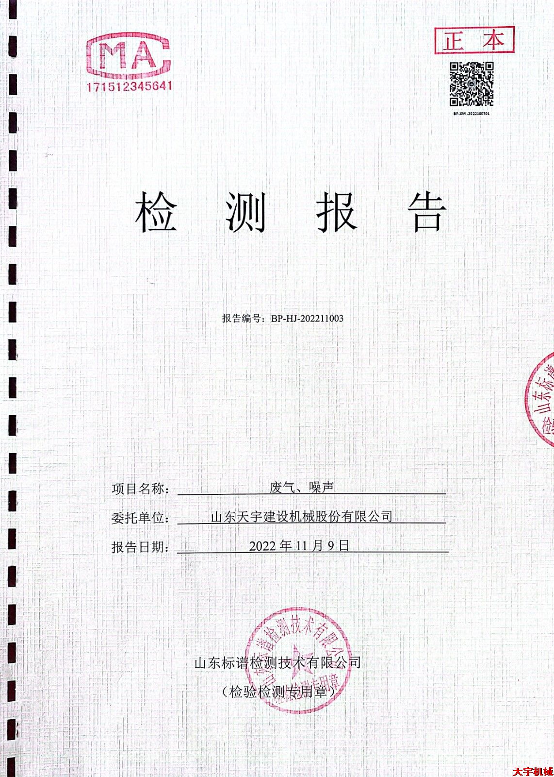 山東天宇建設(shè)機(jī)械股份有限公司廢氣、噪聲檢測(cè)報(bào)告公示